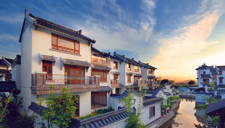 泮庐在充分借鉴中国各地民居建筑风格的基础上,着重于挖掘中国安徽民居和江南园林的精髓;并在室内空间营造上,依据当代生活方式所需,规划设计了既具中华传统居住文化与生活风情特征,同时又满足现代生活需求的中式别墅。除了168套中式别墅之外,还将有综合服务中心、康体中心、休闲步行街以及生态园、百花园、四季园、山顶公园、茶艺文化中心、高尔夫练习场等小区配套。