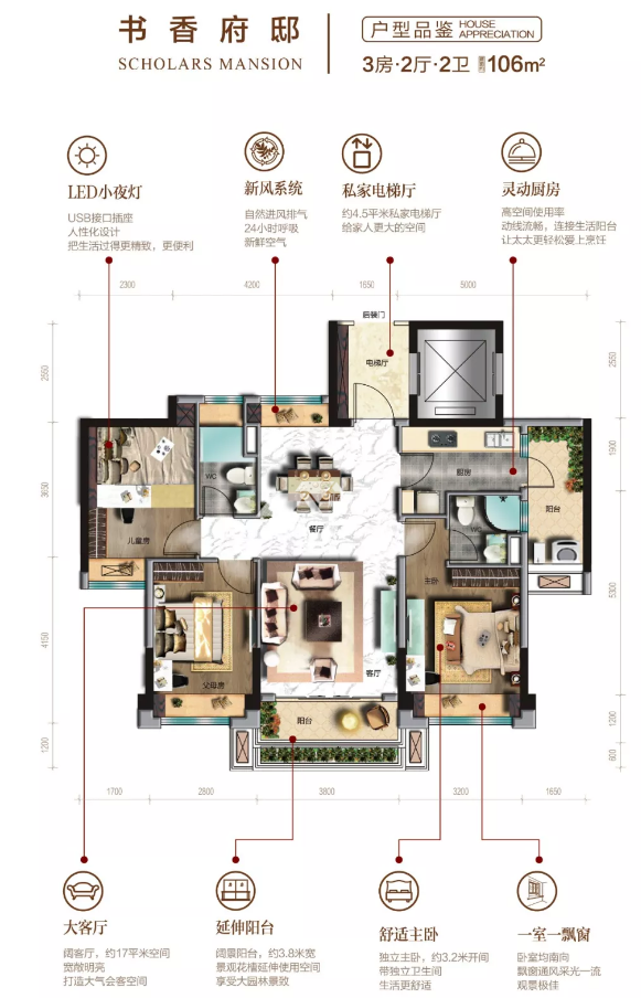 项目总占地面积约71亩,专门定制建面约106㎡阔绰三房,二胎时代118㎡舒适四房两种户型,南北通透一字楼,私家电梯入户,2梯3户17层低密度设计惊艳三乡!小区内配套有高尔夫七重立体园林、儿童乐园、彩虹跑道、羽毛球场、阳光草坪、棋牌广场、按摩石路等7大康体配套,满足老人小孩活力所需。